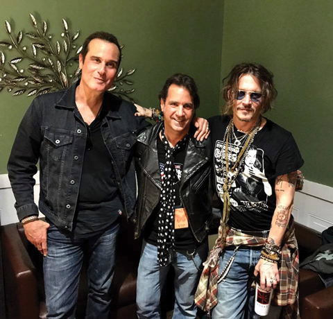 Chris Vranian recently snapped a photo during a little after show hang with Robert DeLeo and Johnny Depp. He shared the photo on social media and posted, “Another great night in the hood!— with Robert DeLeo and Johnny Depp at The Canyon Club.” Stone Temple Pilots played at The Canyon Club with MC5’s Wayne Kramer and Johnny Depp helping out on Kick Out The Jams. Robert Emile DeLeo is an American bass player, songwriter, and backing vocalist for the rock band Stone Temple Pilots. He is part of Delta Deep, and he has also played in Talk Show and Army of Anyone. He is the younger brother of Stone Temple Pilots guitarist Dean DeLeo. He is also the current bass player for the group Hollywood Vampires. John Christopher Depp II (born June 9, 1963)[1] is an American actor, producer, and musician. He has been nominated for 3 Academy Awards and won the Golden Globe Award and Screen Actors Guild Award for Best Actor. He rose to prominence on the 1980s television series 21 Jump Street, becoming a teen idol. He has collaborated on nine films with director, producer and friend Tim Burton. Depp is regarded as one of the world’s biggest film stars. Films featuring Depp have grossed over $3.2 billion at the United States box office and over $8 billion worldwide. His most commercially successful films are the Pirates of the Caribbean films, which have grossed $3 billion, Alice in Wonderland, which grossed $1 billion, Charlie and the Chocolate Factory, which grossed $474 million, and The Tourist, which grossed $278 million. Depp has been nominated for major acting awards, including three nominations for Academy Award for Best Actor.[8] Depp won the Golden Globe Award for Best Actor – Motion Picture Musical or Comedy for Sweeney Todd: The Demon Barber of Fleet Street and the Screen Actors Guild Award for Outstanding Performance by a Male Actor in a Leading Role for The Curse of the Black Pearl. He has been listed in the 2012 Guinness World Records as the highest paid actor, with earnings of $75 million. Depp was inducted as a Disney Legend in 2015.