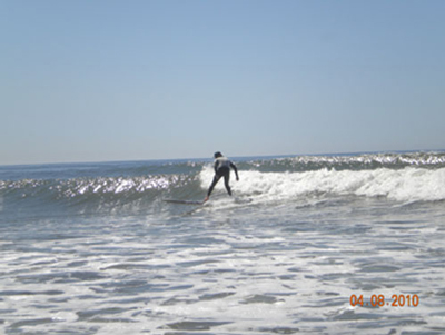 Every other surfer had caught a wave in, or was still paddling back out and the line-up was now empty. The swell of water that approached me with its promise of hitting the shallower sandbar and evolving into a wave that would peel to the right, sent a rush of adrenaline through my whole body. I turned my old, cheap, semi-waterlogged surfboard toward shore and began paddling. As the wave took form, I felt my board being lifted up by the liquid energy as the hope that I could successfully negotiate a “drop-in” and “bottom-turn”, raced through my mind. It was time. I awkwardly climbed to my feet and slid down the face of the small wave, easing into a right turn at the bottom, and rode with exhilarating pride for 40 yards nearly right onto the beach. I was 12 years old and the wave was only three feet height, but as surfers say, I was “totally stoked”. As years passed, my boards got better and more expensive and the waves became much larger and more challenging, but I will never forget that defining moment and the great sense of accomplishment, confidence, and momentary harmony with the ocean that began the moment I actually “surfed.”