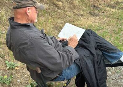Retired CPA Buck Burns has been painting for 4 years and brought his watercolors to the park. He enjoys working on a variety of subjects and often paints cards for his friends.