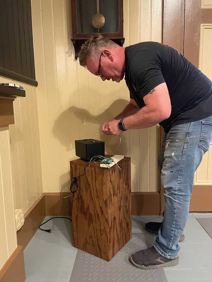 What came together was the perfect solution to the silent whistle situation. Owston built the box around the sound unit and a speaker and wiring. “People who know me know I have a thing about not seeing the cords,” he admitted. The result is beautiful. It may be just a whistle, but it makes a giant difference in allowing someone to understand railroading.