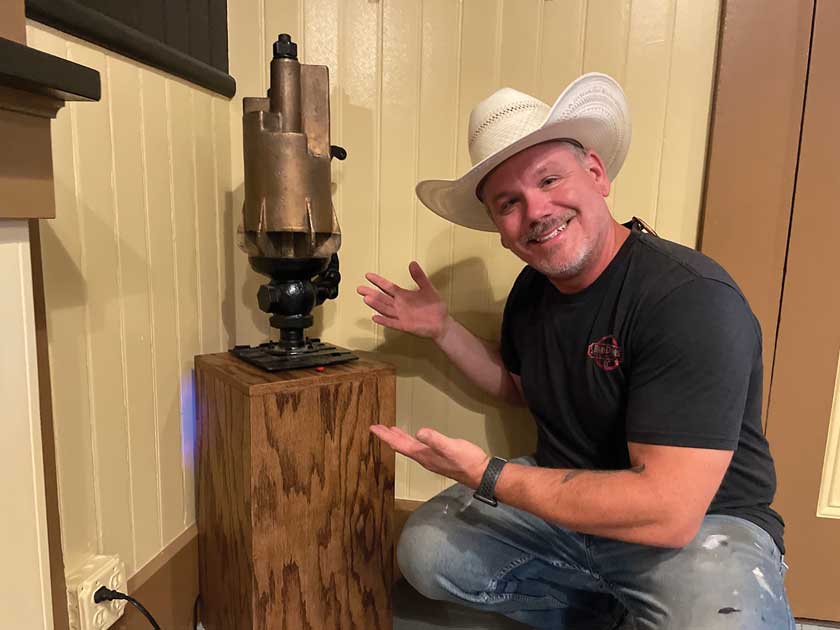 Michael Owston has years of experience designing sound effects for the stage, and a side gig of making barn doors. He met with project manager Leon Worden to find out what he needed and a short time later, brought his creation to the museum to try it out.