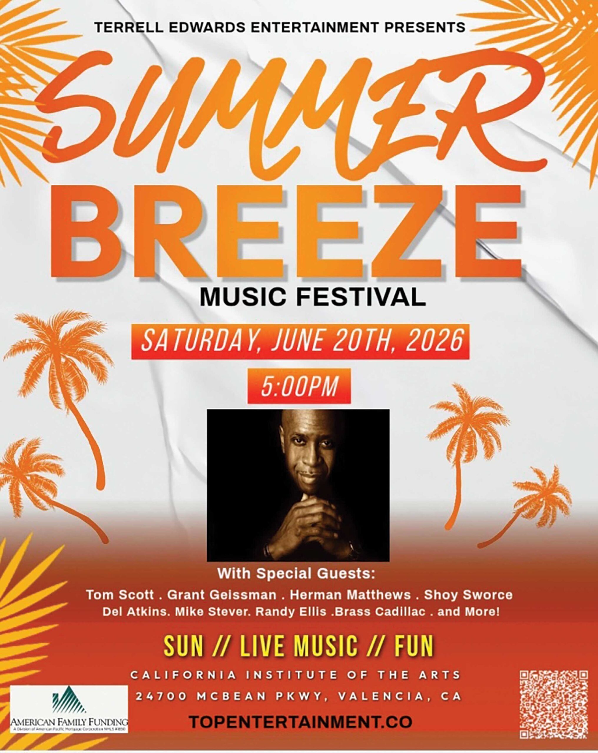 Top Entertainment and American Family Funding are proud to announce the highly anticipated return of the Summer Breeze Music Festival IV, taking place on Saturday, June 20, 2026, at the iconic California Institute of the Arts (CalArts).